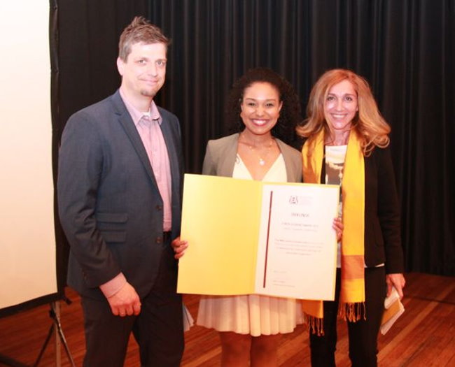 links Prof. Brand, Politikwissenschaftler an der HSRW, in der Mitte die Preisträgerin Millie-Jessica