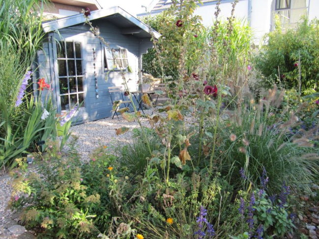 Ein großer Kiesgarten, Staudenbeete, Kräuter und ein Senkgarten begeistern im Garten Projektraum-Gewächshaus in Asperden, der am 23. August und 06. September zum Besuch einlädt.