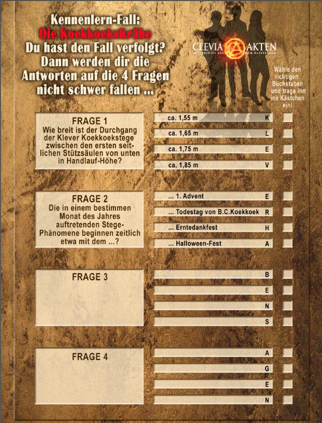 Bevor es zum Finish und der Auflösung der Spannung kommt im Roman „Die Koekkoekskrähe“ von Dee Borre, hier schon mal ein Vorgeschmack auf die sich dann stellenden Fragen des verbundenen Gewinnspiels: