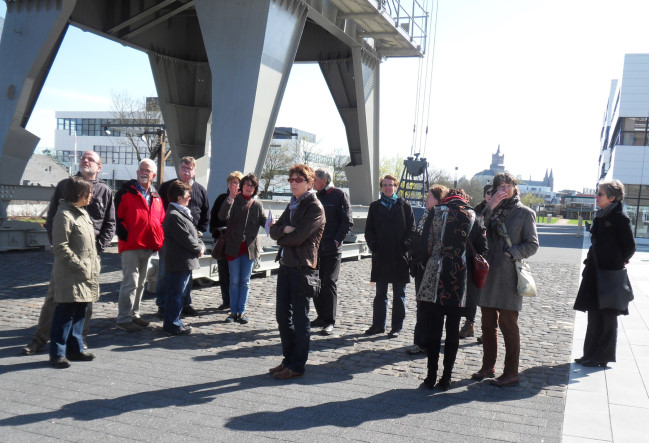 Vom Treffpunkt an der Touristinfo (Opschlag 11-13) führt der Rundgang mit Ursula Geisselbrecht-Capecki zunächst zum Opschlag und dann, vorbei am früheren Hafenbecken und entlang des Spoykanals bis zum heutigen Hochschulcampus.