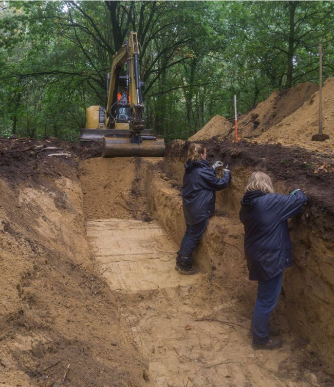 Am 23. 10. 2015 findet ein Tag der offenen Grabung statt. Zu sehen ist ein Schnitt durch die römische Straße zwischen Kleve und Nimwegen in einem Waldstück nahe Kleve.