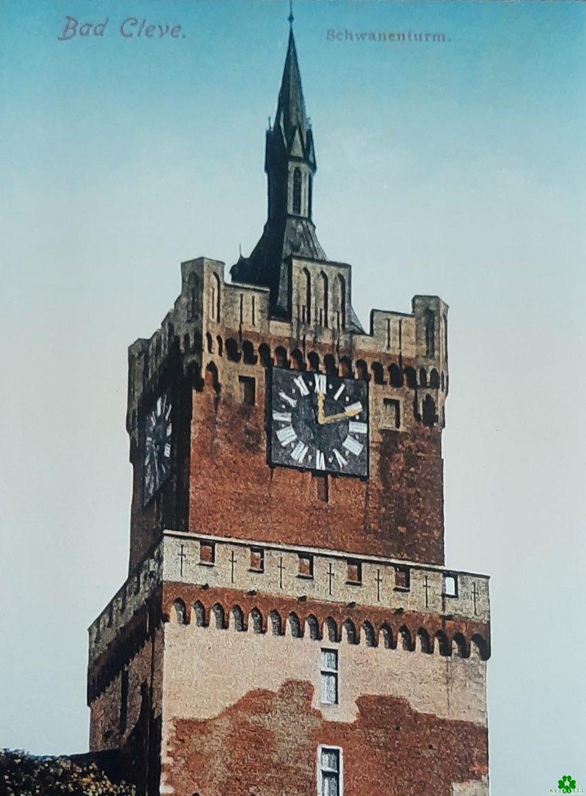12:10 Uhr auf dem ursprünglichen Schwanenturm So sah er mal aus, als Kleve noch Bäderstadt war und Bad Cleve hieß und vor seiner Zerstörung im 2. Weltkrieg. War doch auch ein herrlicher Anblick und etwas kunstvoller als aktuell.