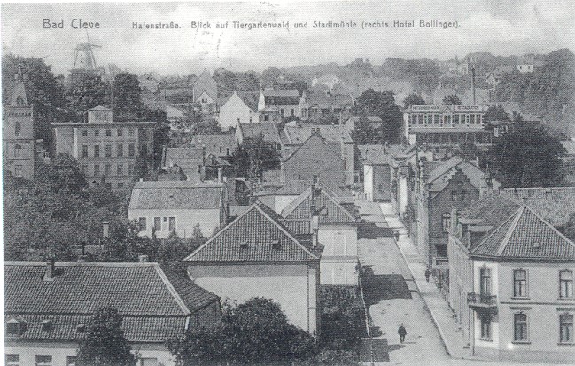 Oben rechts erkennt man das Hotel Bollinger am Hang und oben links die Große Stadtmühle. Direkt darunter sieht man den Dr.Arntz-Turm und das Koekkoek-Haus.