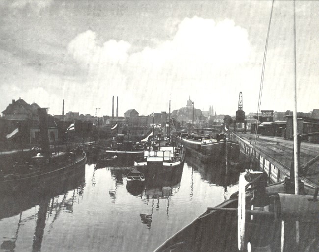 Im Jahre 1910 war der Klever Hafen noch sehr befahren und geschäftig, denn damals lief der Transport doch noch vorwiegend über die Wasserstraßen.