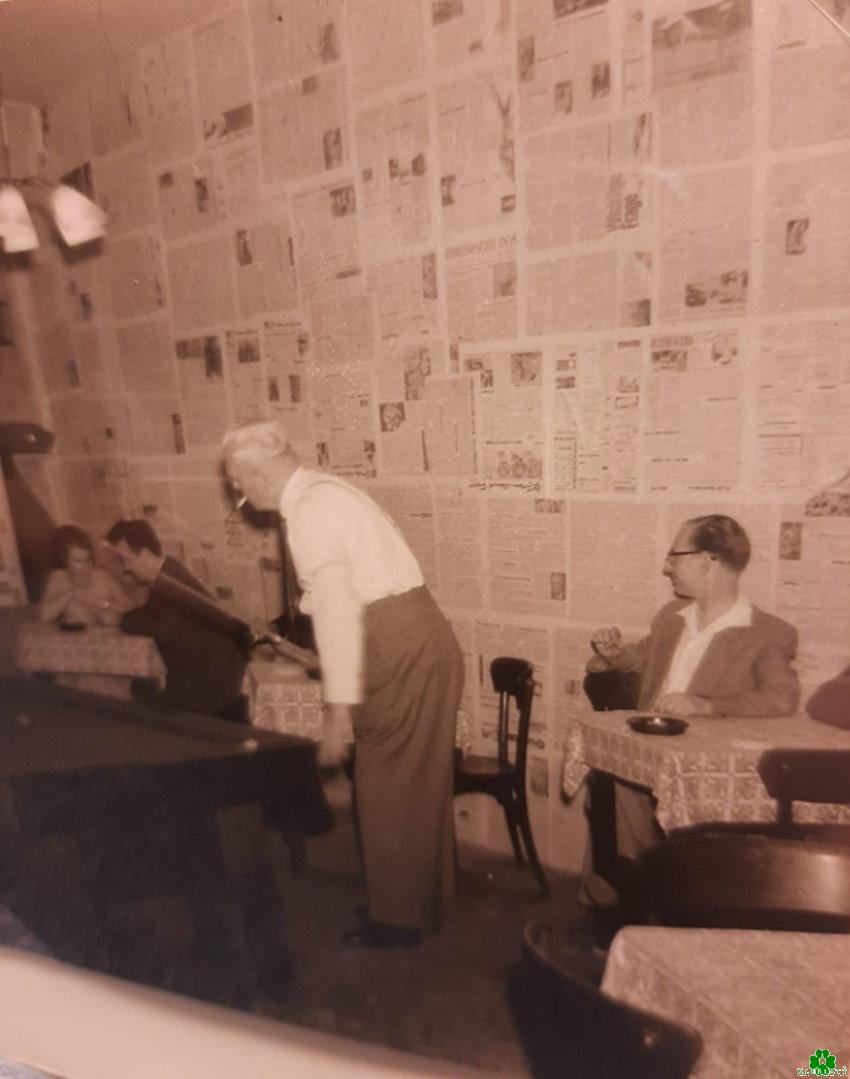 Normalerweise kam dann die Tapete darüber. Aber hier scheinen die Zeitungen zu genügen. Wir sehen hier das Innere der Gaststätte Aloys Verheyen. Sie befand sich derzeit auf der Gasthausstraße. Wie man sehen kann, spielte man beim Rauchen Billard.