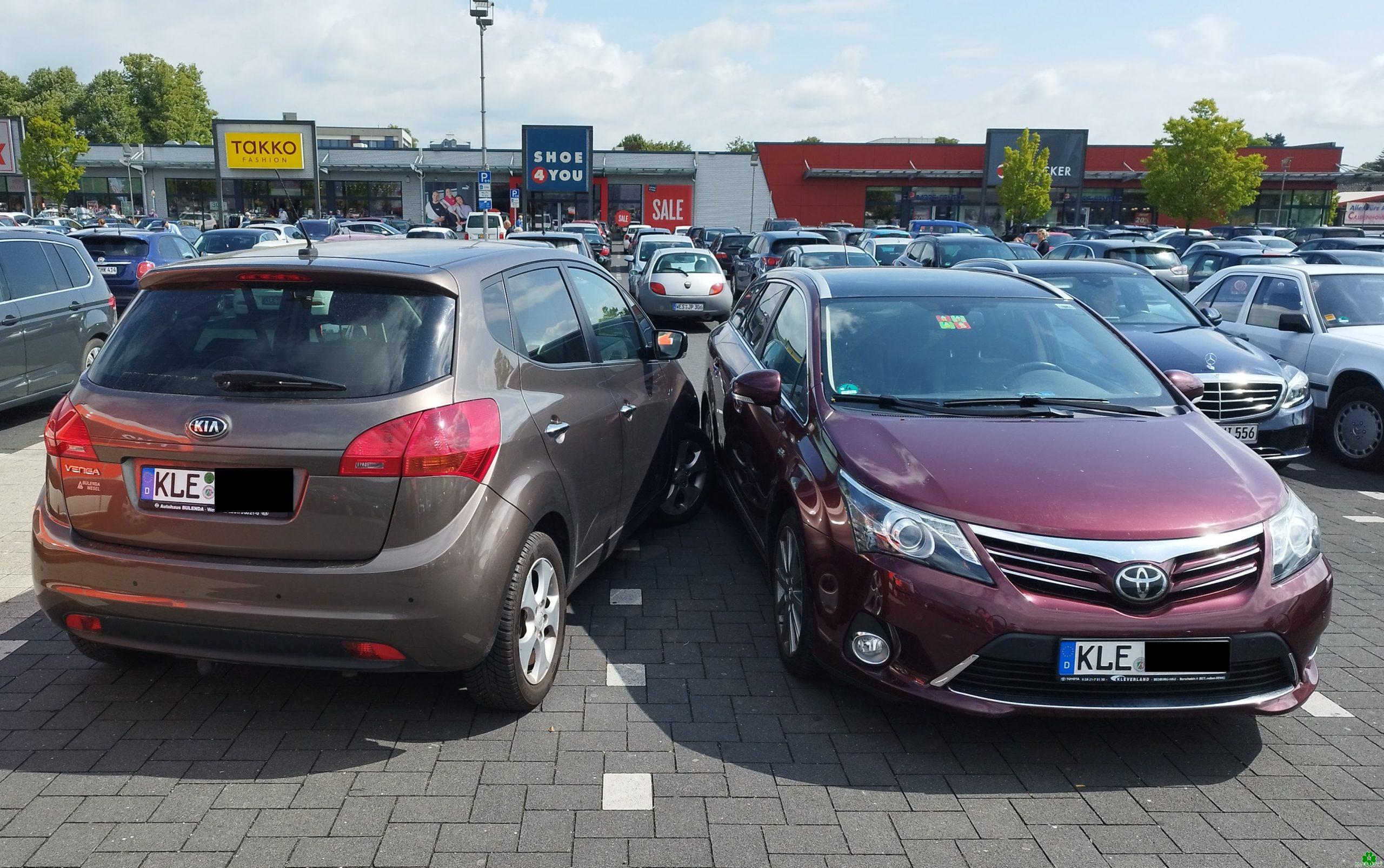 Diesen Spruch möchte man diesem „Parkkünstler“ zurufen, der gestern auf dem EOC-Parkplatz diesen Versuch unternahm, eine Parklücke zu füllen.