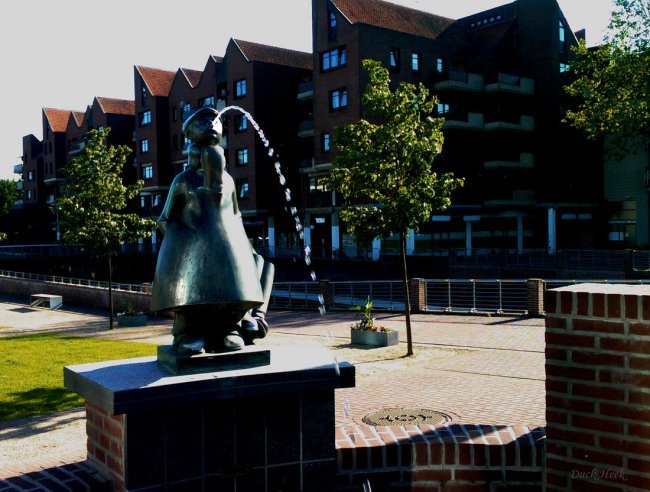 Bei diesem Anblick muss man unwillkürlich die Füße einziehen, sonst spuckt er genau darauf. Der Bältermann – das Spuckmänneken von Kleve – ist wieder voll in Aktion und rotzt dem Vorübergehenden spöttisch seine Wasser-Intervalle entgegen. Insider wissen natürlich, daß es in der Realität eine braune Soße war, die vom Kautabak stammte. IIIEEEHHH! 😉