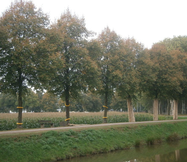 Aktuell erhalten die Bäume längs des Prinz-Moritz-Kanals einen „Schutzumschlag“.