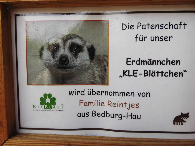Sieht es nicht niedlich aus, unser Patenkind, das Erdmännchen „KLE-Blättchen“ vom Klever Tiergarten?
