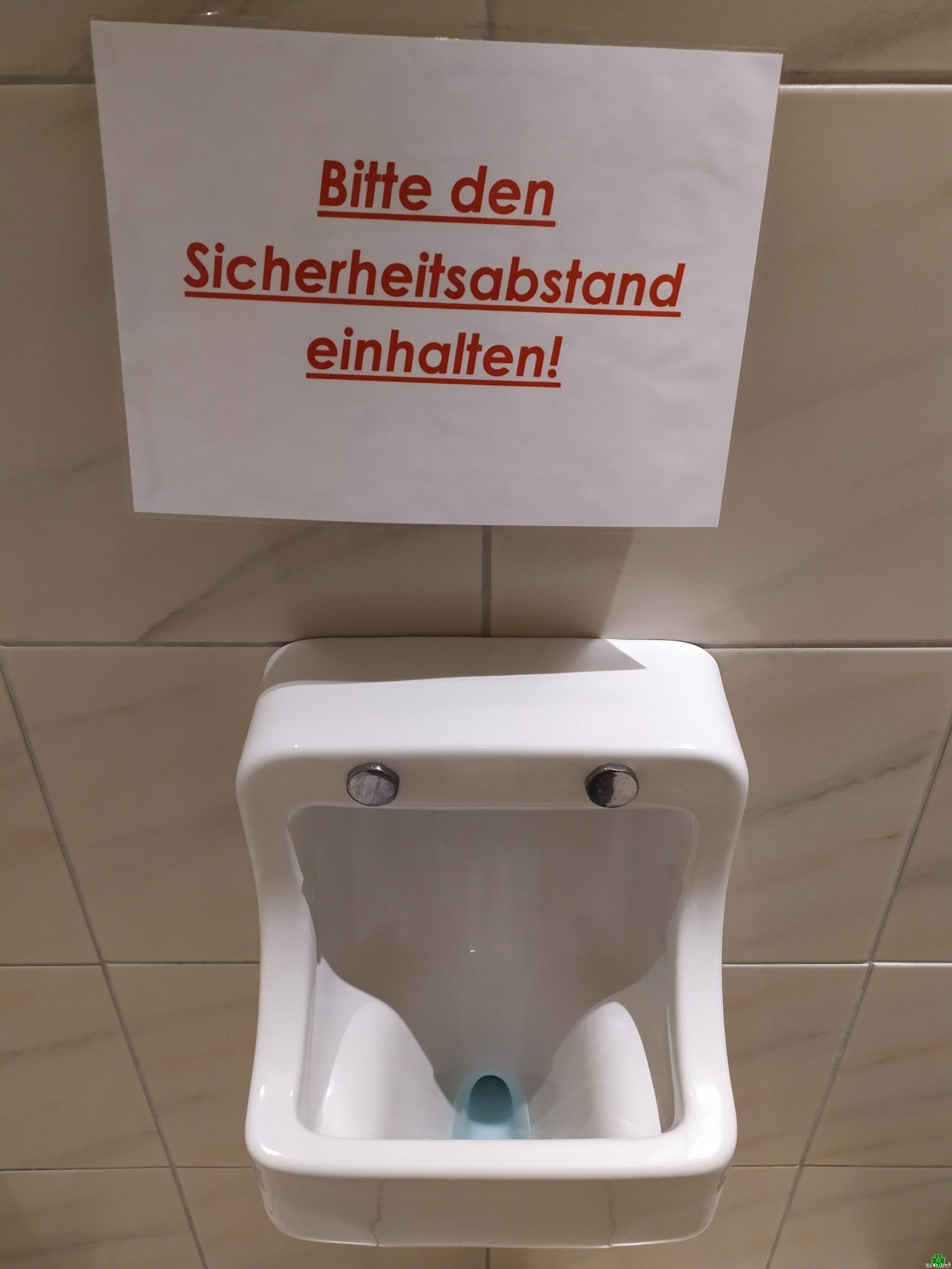 In einem sehr guten Restaurant im Kleverland, erblickten wir beim Toilettenbesuch an dem Männerpissoir diesen Corona-Hinweis.