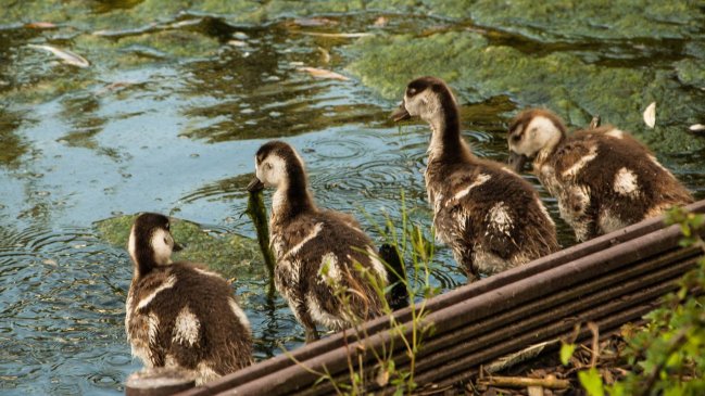 Sie stehen in den Startlöchern, die niedlichen kleinen Enten und beäugen sich ganz vorsichtig. Wer von ihnen startet als erster zur Fischjagd? Denn oben links sieht man, wie sich ein leckerer Fisch nähert.