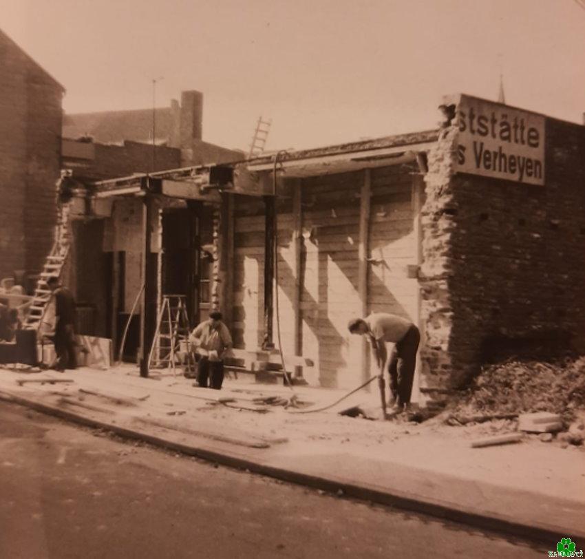 Das war mal die Gaststätte Adler in Kleve Wie man noch bruchstückhaft lesen kann, war der Betreiber seinerzeit Aloys Verheyen. Wir sehen hier den Abriss bzw. Umbau des Betriebes, der Anfang der Sechziger stattfand. Wer weiß noch, wo er sich befand? (Foto: Frank Pitsch)