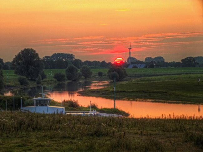 Eine niederrheinische Idylle im farbenfrohen Licht der untergehenden Sonne. Ein prachtvoller Anblick, den man hier bei Düffelward erleben kann, wenn man bei dem richtigen Wetter zur richtigen Zeit am richtigen Ort ist. Wie so oft im Leben. 😉