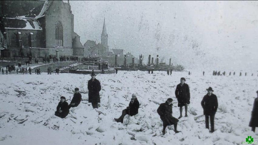 Ob es jemals noch soweit kommt, dass man von Warbeyen über den zugefrorenen Rhein nach Emmerich laufen kann? Nun – vor über 120 Jahren war das, wie man auf diesem Bild bewundern kann, durchaus möglich. Da konnte man noch ohne Angst die eiskalte Wasseroberfläche betreten und sich durch die Eisschollen kämpfen.