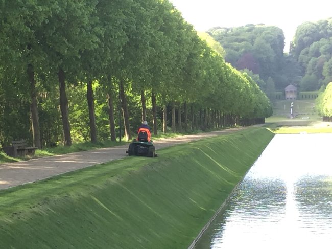 Und auch der Rasenmäher-Mann ist voll aktiv und fährt mit seinem Mäher die grüne Böschungs-Befestigung auf richtige Länge. Bei diesem Wetter heißt es: Raus in den Forstgarten und in den Tiergarten.