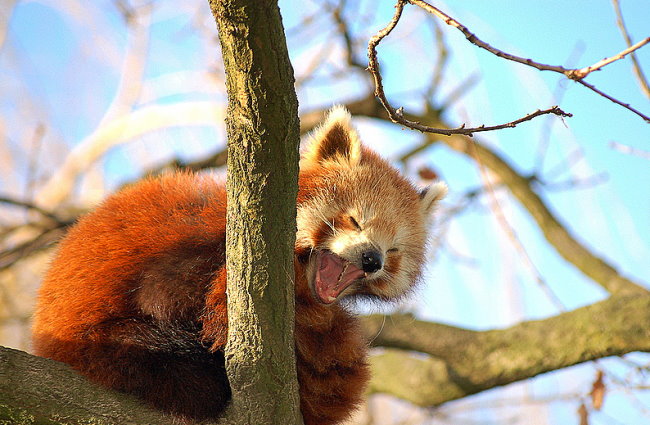 Auf diesem Bild sehen wir den Roten Panda – ein Katzenbär – der hier lauthals zu lachen scheint.