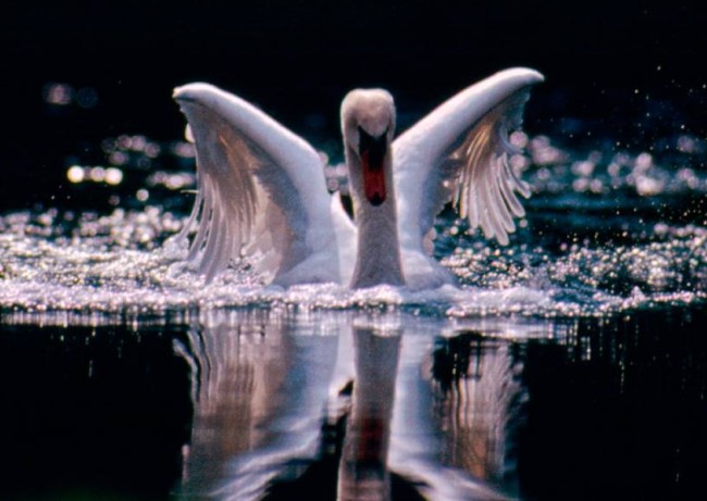 Elegant und majestätisch landet der erhabene Wasservogel in seinem Element.