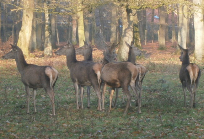 Man könnte beim Anblick dieses Fotos annehmen, das es sich hier um den Weihnachtsmann-Rentier-Nachwuchs aus Reichswalde handelt, denn dort kann man das bildschöne Rotwild (leider kein Rentier dabei) im Wildgehege besichtigen.