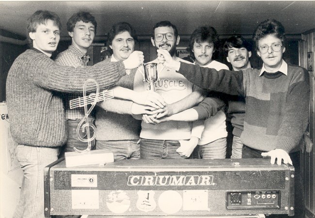 Auf dem Foto unten sieht man Dieter Timmer ganz links und Dieter Litjens ist der zweite von rechts. Das Bild zeigt die Gruppe „Wette Pööt“ nach ihrem Sieg beim Liemers Schlagerfestival in den Achzigern. Den Siegertitel von damals veröffentlichen wir hier bei KLE-Blatt in Kürze.