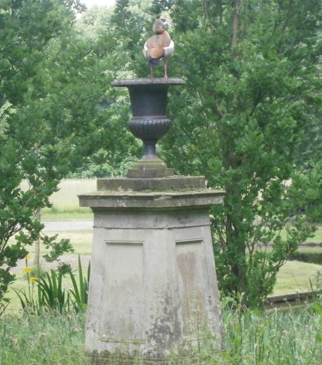 Der Gänserich kann es nicht abwarten und hat sich schon mal auf dem Podest im Forstgarten gemütlich gemacht.