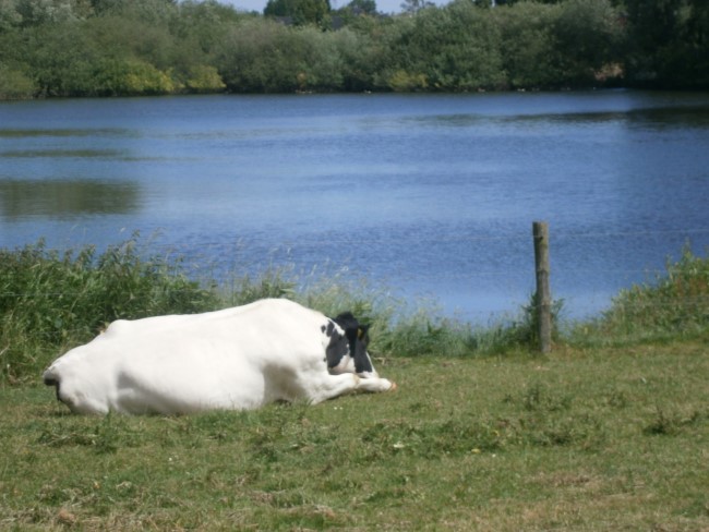 Man denkt, diese Kuh in Kellen sei auf der Lauer nach fetter Beute und ist jederzeit sprungbereit.
