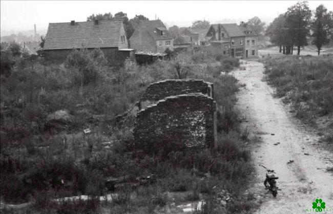 Anfang der Fünfziger Jahre hatte Kleve mit den Folgen des Bombenangriffs von 1944 zu kämpfen und versuchte langsam aber sicher die Schutt-Berge zu beseitigen und auf den Trümmer-Grundstücken wieder Ordnung zu schaffen für neue Nutzung und Bebauung. Dieses Bild hier werden nur sehr wenige Klever einordnen können. Erst wenn man in etwa weiß, wo wir uns hier befinden, kann man sich vorstellen, was damals in der Stadt los war. Der Blick geht vom Grünen Heideberg hinunter auf den Großen Markt oben rechts am Bildrand. Hättest Du es gewusst? 😉