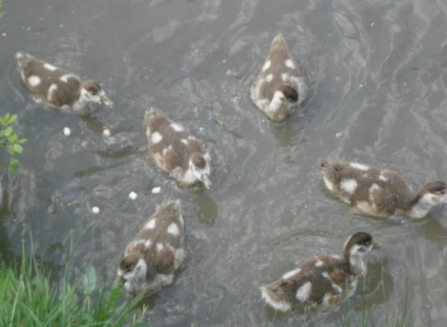 Der Enten-Nachwuchs im Klever Forstgarten ist eingetroffen. Und das gleich in sechsfacher Ausführung. Sie haben alle die identische Musterung. Also kann sie wahrscheinlich nur die Mutter auseinander halten. Putzig.