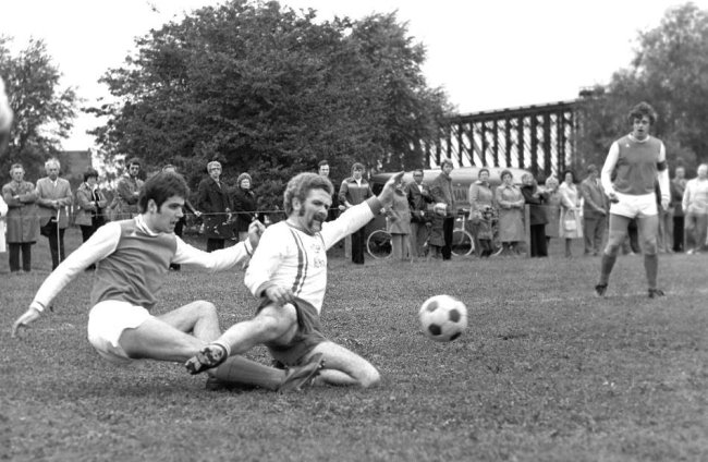 Wir können sehr schön sehen, mit welcher Verbissenheit auch bereits in unteren Ligen gekämpft wurde. Obwohl – die Frisur sitzt. 🙂