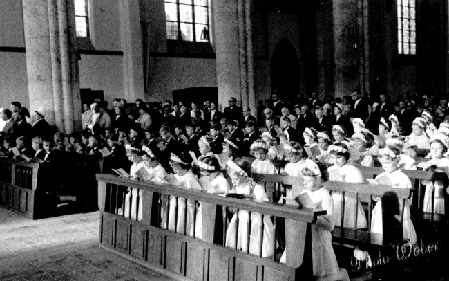 Nun – ganz so schlimm war es nicht, als man in der Kirche die heilige Kommunion im Jahre 1962 feierte. Allerdings war es damals üblich, das Mädchen – die man ja immerhin auch als „Bräutchen“ bezeichnete – und Jungen getrennt voneinander aufbewahrte bzw. platzierte. 🙂
