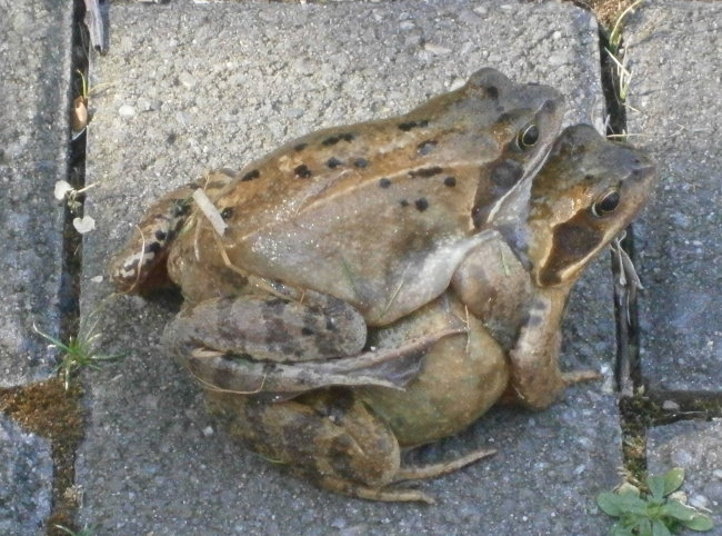Manchmal kommen sie auch in Begleitung. Dann hat die eine Kröte die andere per Anhalter auf den Rücken geladen. 🙂