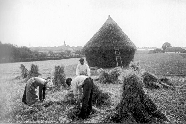 Damals sahen die Heuhöpper – oder Kornschober, wie man sie auch nannte – so aus. Das Heu wurde dann mit Mistgabeln auf Anhänger geladen und eingefahren.