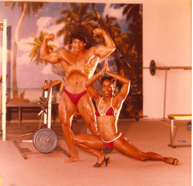 Als Trainer für die Bodybuilding-Begeisterten galt er natürlich als absolutes Vorbild und jeder wollte die besten Tipps aus seinem Erfahrungsschatz für sich selber nutzen. Hier sieht man ihn mit der ersten Aerobic-Trainerin in Kleve. Sie kam aus den USA und war in Kalkar als Soldatin stationiert. Sie brachte lange vor allen anderen die neue Sportart nach Kleve.