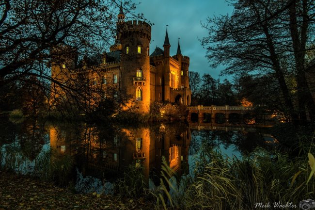 Schloss Moyland im Spiegel Und zwar im Spiegel des ruhig liegenden Sees, der das Schloss umgibt. Ein prachtvolles Gebäude in wundervollem Licht auf einem perfekten Bild festgehalten. Eins zu eins geeignet, eine tolle Ansichtskarte daraus zu machen. (Foto: Meik Wächter)