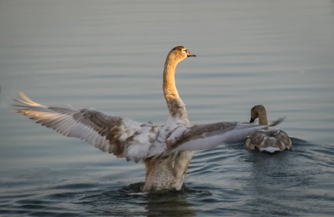 Ein Schwanenmorgen in Kleve Sieht es bei uns anders aus? Nö! Wir müssen uns morgens auch erst mal recken und strecken und uns die Nachtmüdigkeit aus den Gliedern schaffen. Warum sollte es bei Schwänen anders sein. 😉 (Foto: Klaus Viethen)