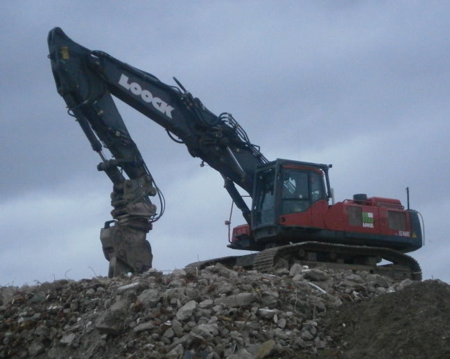 Es ist bereits 9 Jahre her, als dieser Bagger auf den Trümmern und letzten Resten des einstmals legendären Schweizerhauses stand. Selbst diese Brocken, die wir hier sehen, waren bald restlos verschwunden.