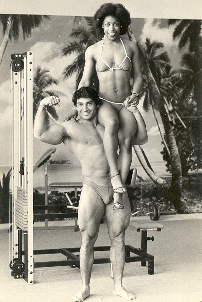 Vor tropischer Kulisse posieren hier die damaligen Trainer des Sport- und Freizeittreffs in Kleve. Der mehrfache Bodybuilding-Preisträger und Mr. World, Said Osman aus Ägypten, half den Sportbegeisterten beim Einstieg – nicht nur im Bodybuilding – sondern auch in Sachen Fitness und Ernährung. Die Gymnastik- und Aerobic-Trainerin war stationiert als Soldatin in Kalkar und führte sehr früh schon das in Deutschland damals noch kaum bekannte Aerobic in Kleve ein. Es sollte sich zu einem echten Renner entwickeln und die Kurse waren zeitweise hoffnungslos überbucht.