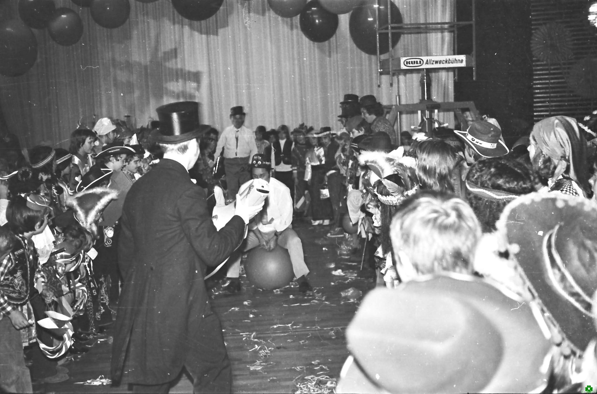 Man schrieb das Jahr 1974, als dieses Bild entstand. Wie man sieht, haben sich zahlreiche Kinder kostümiert, um in der Stadthalle einen zünftigen Karneval zu feiern. Noch stehen sie hier hinter dem Vorhang, der bald die Bühne offenbart.