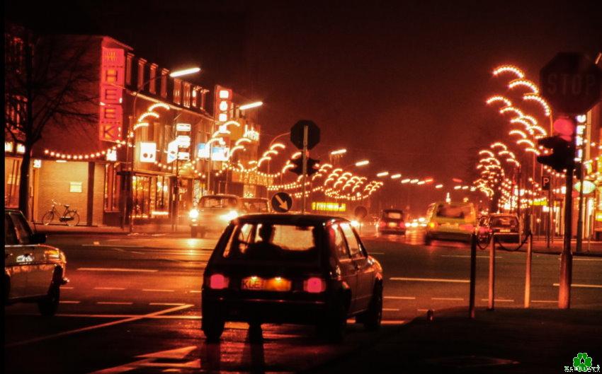 Die Autos stehen an der Ampel, um von der Hagschen Strasse links auf die Lindenallee oder geradeaus in die Hoffmannallee einzufahren. Links sehen wir noch das Hotel Haus Heek. Die Weihnachtbeleuchtung war nett, aber mehr auch nicht.