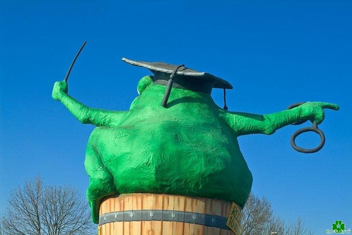 Das dürfte nicht schwer sein. Es ist grün, hat Glubschaugen und quakt. Klar – die Brejpott Quaker aus Kellen haben diesen Professor mal gebaut. Mit typischer Kopfbedeckung, Zeigestock und Brille der Weisen scheint er hier auf etwas aufmersam zu machen. Oder sitzt er einfach nur auf dem Eimer. 🙂