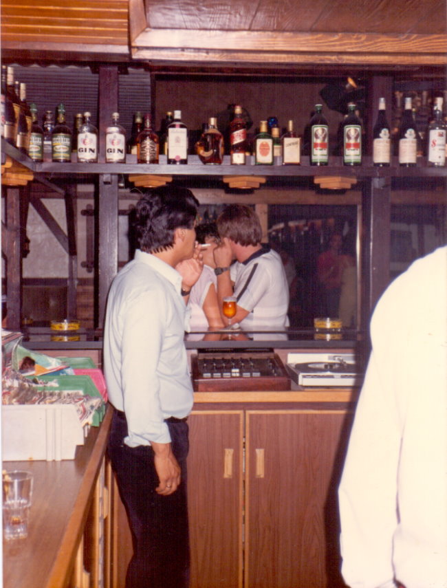 Während Inhaber und DJ Dave sich genüsslich ein „Flüppchen“ reinzieht, geht man an der Theke im Hintergrund den wahren Absichten eines Disko-Besuches nach: Dem Kennenlernen über die Zunge. 🙂