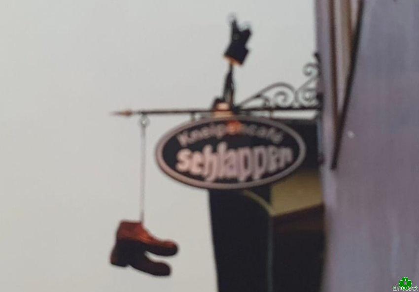 Klar, das Foto ist nicht wirklich scharf und deutlich. Doch wer dieses Schild mit den kuriosen Schuhen gekannt hat, weiß wo es sich einst befunden hat. Diejenigen, die dort ihr Bierchen getrunken haben, denken sicher gerne daran zurück.