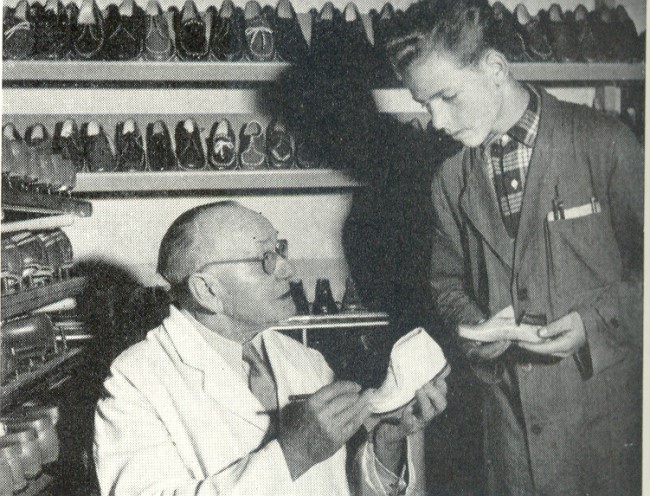 Wie in jedem guten Betrieb, so wurde auch bei der Schuhfabrik Gustav Hoffmann großer Wert auf die Ausbildung von hoffnungsvollen Nachwuchskräften gelegt, wie man auf diesen beiden Bildern eindrucksvoll besichtigen kann.