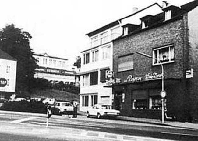 Auf diesem etwas unscharfen Bild sieht man zwei Gastronomie-Legenden aus Kleve. Hotel Bollinger ist längst abgerissen und es gibt auf KLE-Blatt zahlreiche Berichte und Fotos dieses unvergessenen Hotels. Aber wir sehen auch das altbekannte Haus Royen, in dem der unverwechselbare Manni Royen Jahrzehnte lang das Zepter schwang. Bei ihm gab es nur die Alternativen: man mochte ihn oder man mochte ihn nicht. Zweifelsohne gehörte er aber zu den besten Bierzapfern seiner Zunft und sein preiswerter aber immer deftig leckerer Mittagstisch sucht heute Seinesgleichen.