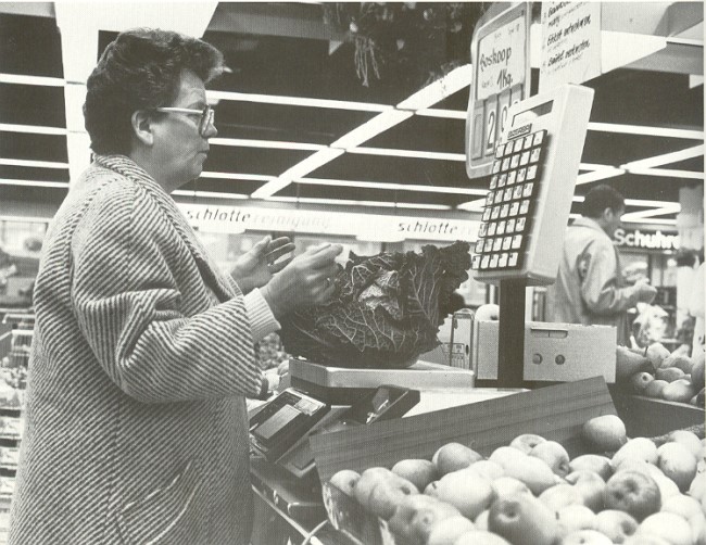 Ende der Achtziger wurde die Selbstbedienung im Supermarkt komplettiert. Die technischen Neuerungen sollten zwar alles erleichtern und weiter automatisieren, aber nicht jeder kam spontan damit zurecht.