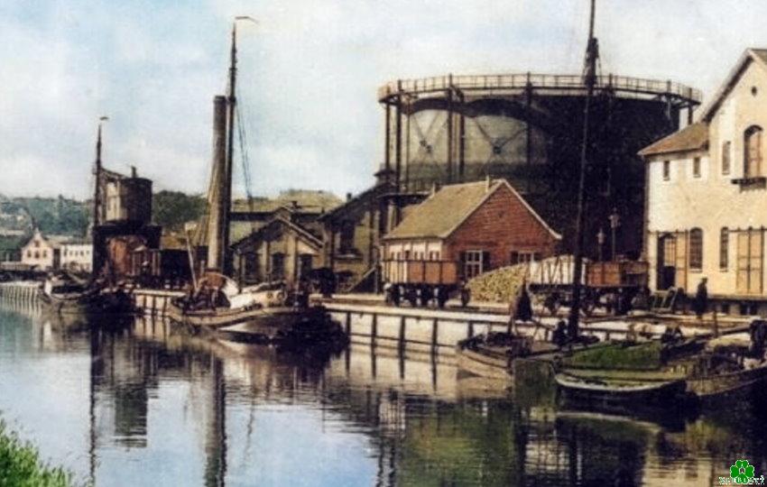 Da war es noch eine neue Werftanlage Ein prachtvolles Bild des damaligen Klever Hafens von der neuen Werftanlage aus. Die angelegten Schiffe waren allesamt Segler, die ihre Fracht nach Kleve brachten, um die damaligen großen Firmen zu beliefern.