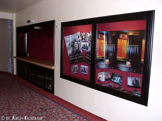 Vorbei an der Garderobe entdeckte man zahlreiche Schaukästen und konnte sich gemütlich auf den Film vorbereiten, denn meistens war man ja eh früh dran und die lokale Diashow der Klever Unternehmen lief noch oder war noch gar nicht gestartet.