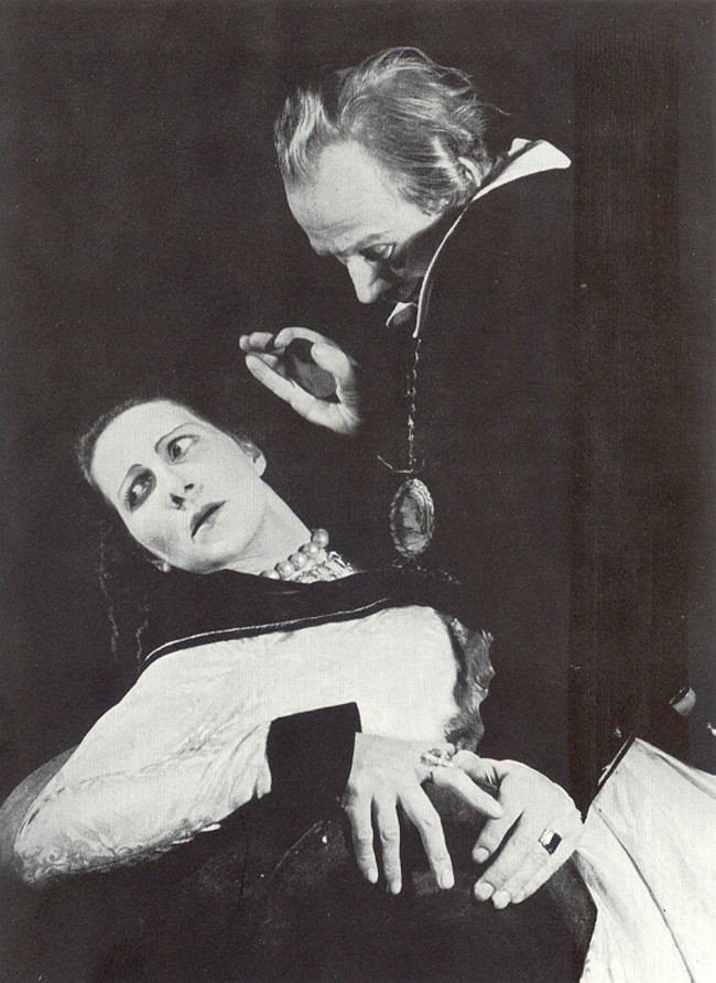 Hier eine Szene aus Shakespears „Hamlet“ mit Josefa Ortmann, der Ehefrau vom bekannten Klever Fotografen Fritz Getlinger, als Gertrude und Werner Budke als Hamlet.