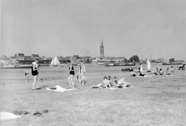 Das Freibad Hoegen in Warbeyen am Ufer des Rheins war hier um das Jahr 1932 herum ganz gut besucht. Obwohl wegen des relativ hohen Fähr-Preises wenige Emmericher herüber kamen und es keinerlei Restaurationen dort gab, zog es die Menschen an. Der Rhein hatte noch eine entsprechende Wasser-Qualität und zum Essen und Trinken brachte man sich halt alles mit, wie bei einem normalen Picknick. Die Männer trugen noch Badeanzüge mit Trägern. Das gehörte sich so. 🙂