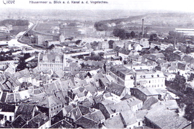 Eine prachtvolle alte Ansicht von der Schwanenburg in die Klever Innenstadt aus einer anderen Zeit, bevor der 2. Weltkrieg das meiste von dem, was wir hier sehen können, zerstörte.