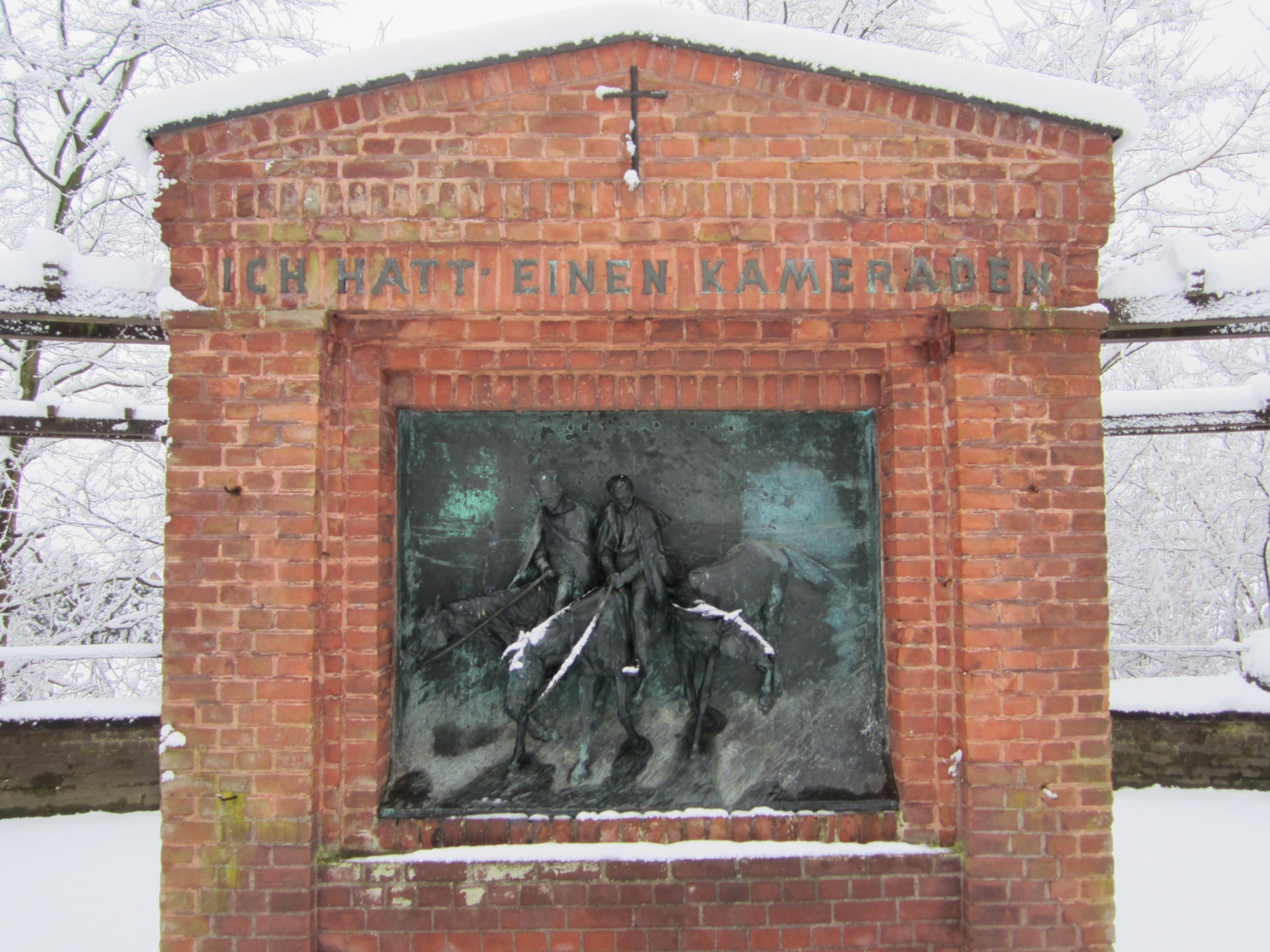 Über dem Denkmal steht der Spruch „Ich hatt einen Kameraden“. Wer sich auf diese Szene einlässt, spürt den Schmerz und die Trauer um den verlorenen Kameraden.